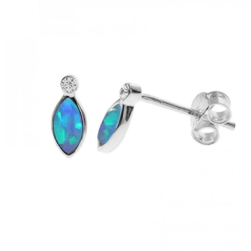 Small marquis 925 silver and blue opalique studs with cubic zirconia