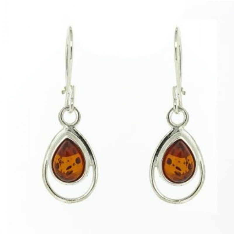 925 Silver & Amber Drop Earrings