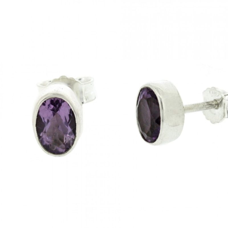 925 Silver & Amethyst Oval Facet Stud Earrings