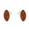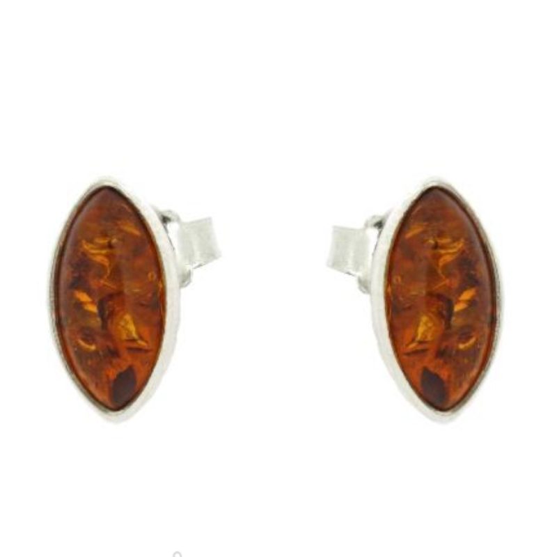 Classic plain 925 Silver marquise shape Cognac Amber stud Earrings.