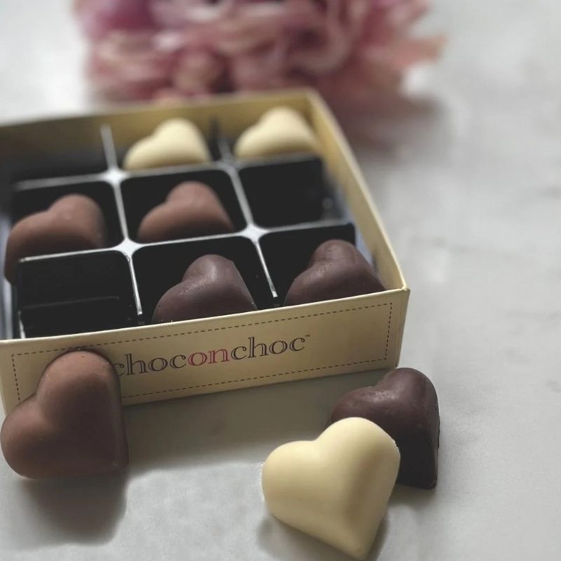 These delicious milk, dark and white Belgian chocolate hearts chocolates are handmade in Somerset by Choc on Choc are the perfect way to send someone lots of love.