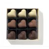 This box contains 9 chocolate shaped hearts, handmade from white, milk and dark Belgian chocolate.
