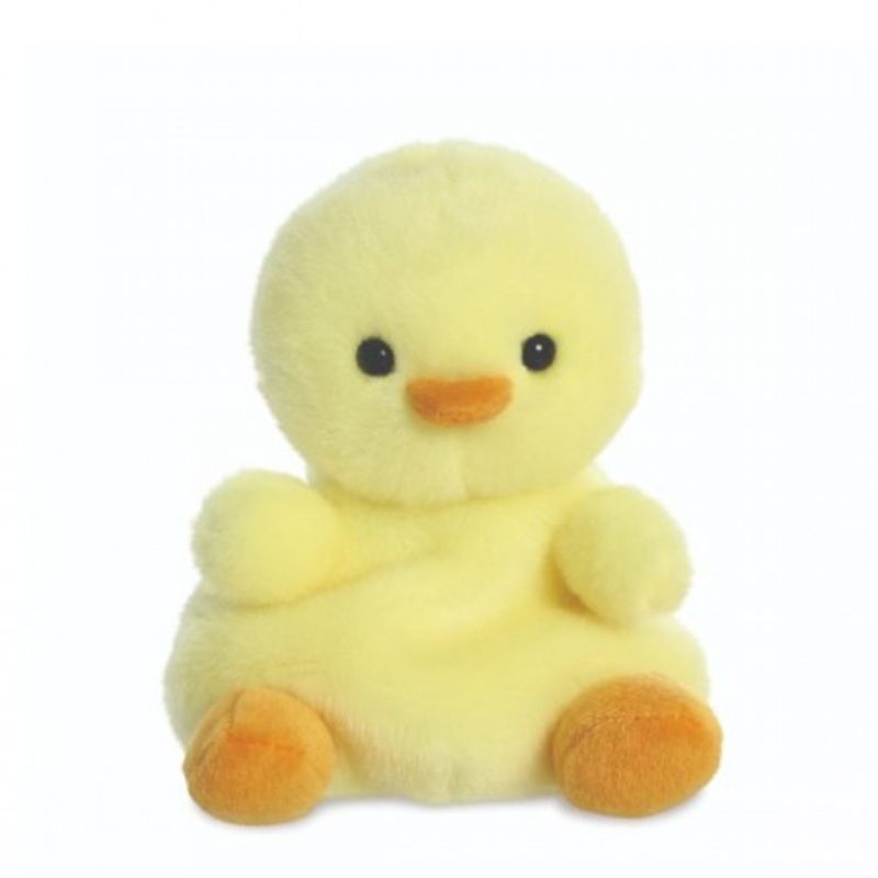 Betsy the chick Soft Toy Palm Pals with yellow furry body, orange beak and black beady eyes.