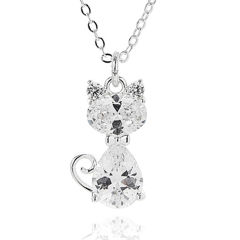 Cat silver plated & Cubic Zirconia Necklace by Equilibrium