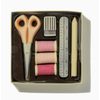 - Box contains 3 chocolate cotton reels, 1 pair of chocolate scissors, 1 set of chocolate needles, and 1 chocolate ruler and pencil