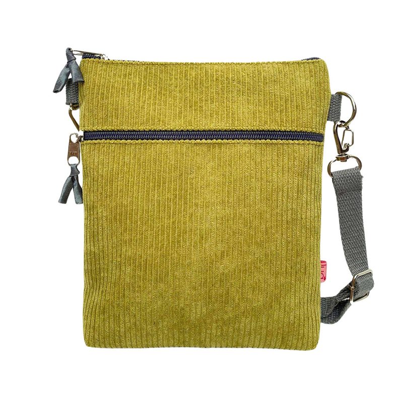 Popular design cross body bag by Lua in velvety jumbo corduroy with contrasting strap.