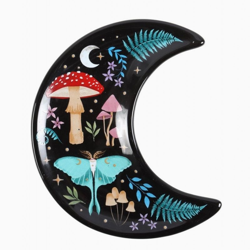 This beautiful crescent moon trinket dish features stunning illustrations from a nocturnal landscape including colourful flora and fauna with golden star details for a touch of celestial magic.