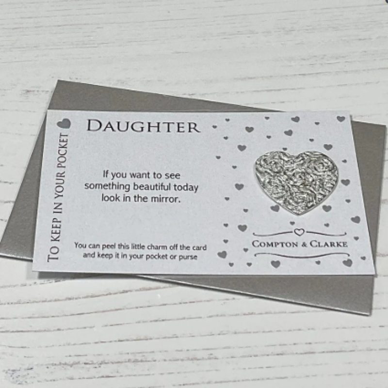 Daughter - Pewter Heart Pocket Charm By Compton & Clarke