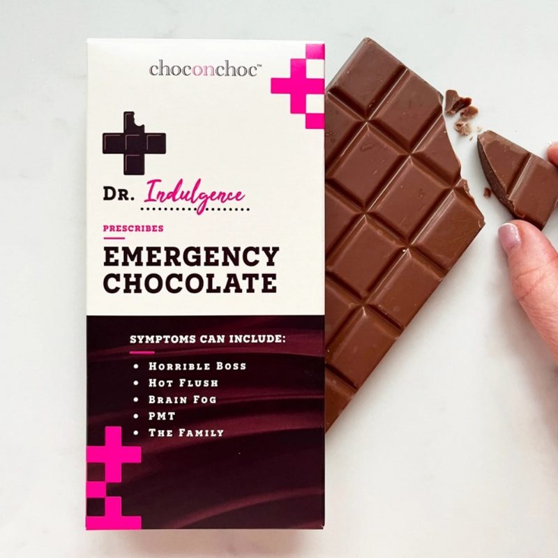 This bar of "Emergency Chocolate" has been developed to help you deal with life's ups and downs. It's been concluded that chocolate will help and is guaranteed to make you feel much better. We hope you enjoy!