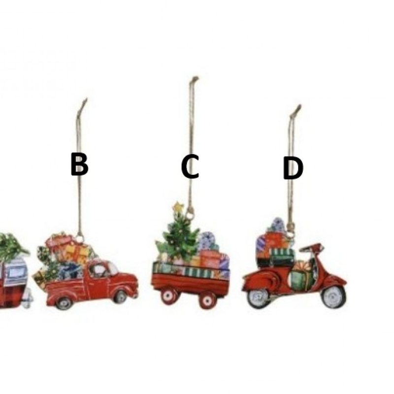 Lovely double sided Festive Vehicle metal hanging decoration.