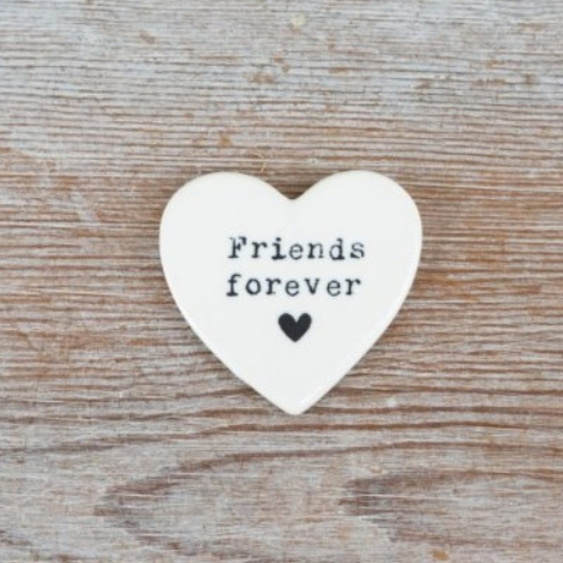 Cute little glazed ceramic sentiment token "Friends forever"