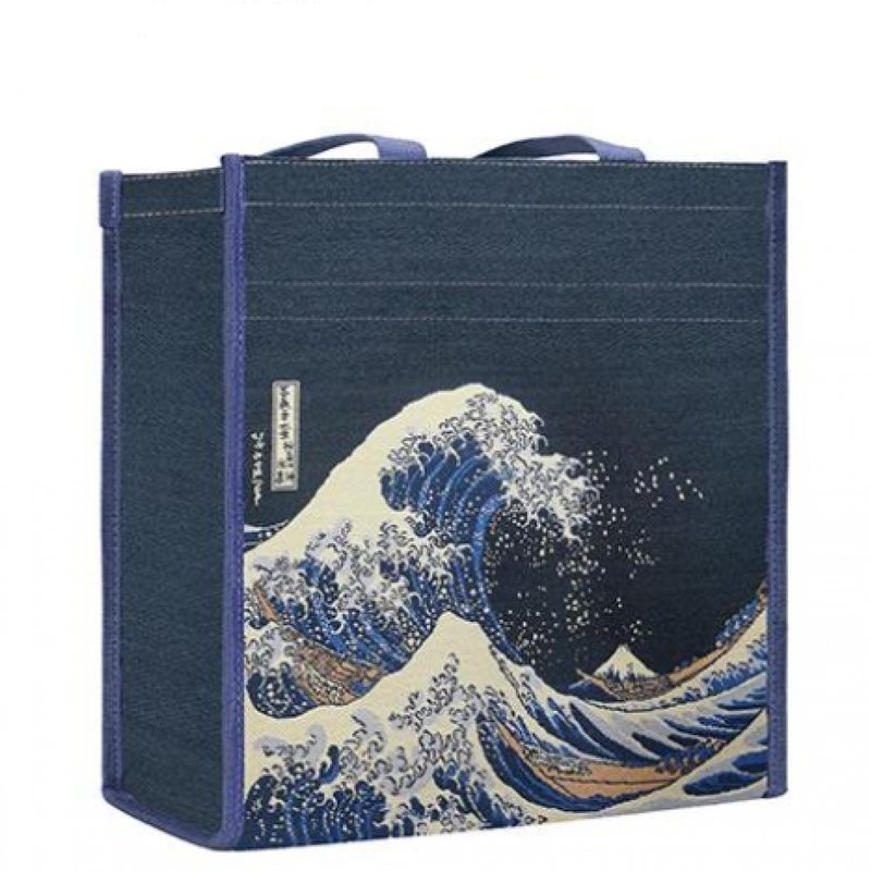 This Great Wave Off Kanagaw Shopper Bag by Signare has full width pockets located on both sides of the shopper; one is fastened with a zip and the other with velcro for a stylish variation and easy access.