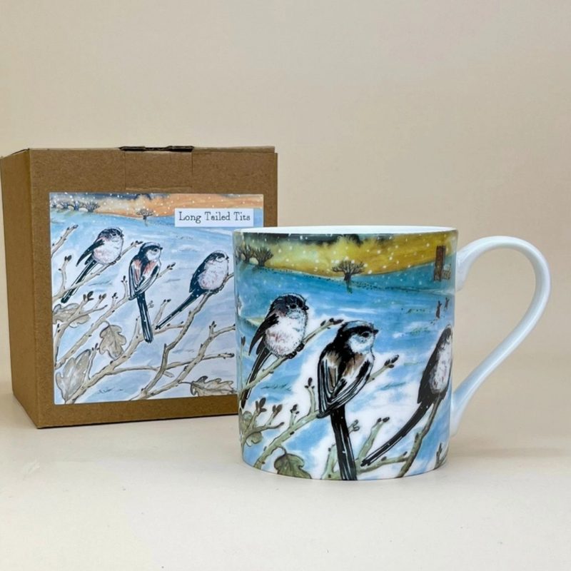 Illustrated by Sarah Pettitt, the delightful image of three Long-Tailed Tits sitting on branches adorns this adorable fine bone china mug by Heaven Scent.