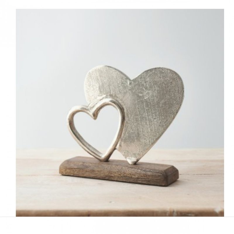 Metal Double Hearts Decoration on Wood Base