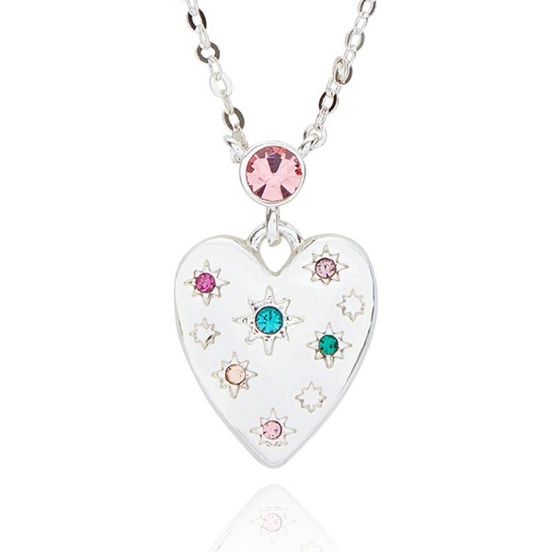 Multi colour stone set silver plated Heart Necklace by Equilibrium