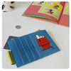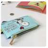 On the back there is a contrasting dark blue PVC card slots and an illustration of Snoopy on his house!