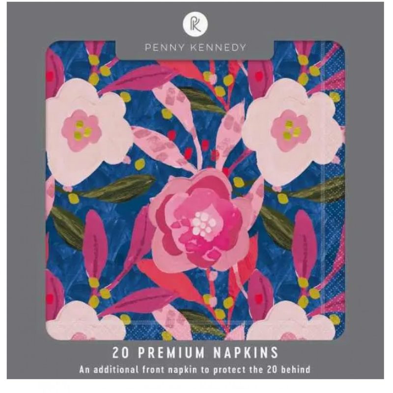 Penny Kennedy Paper Napkins (20) - Pink & Blue Flowers