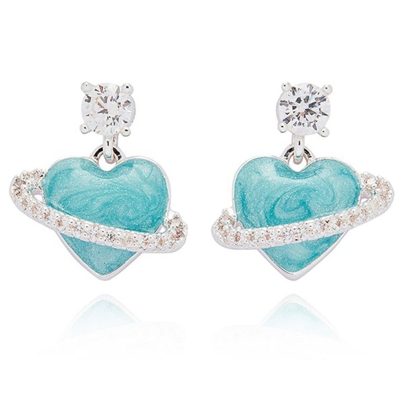 Small drop Planet Heart Silver Plated Earrings with cubic zirconia stud fittings by Equilibrium