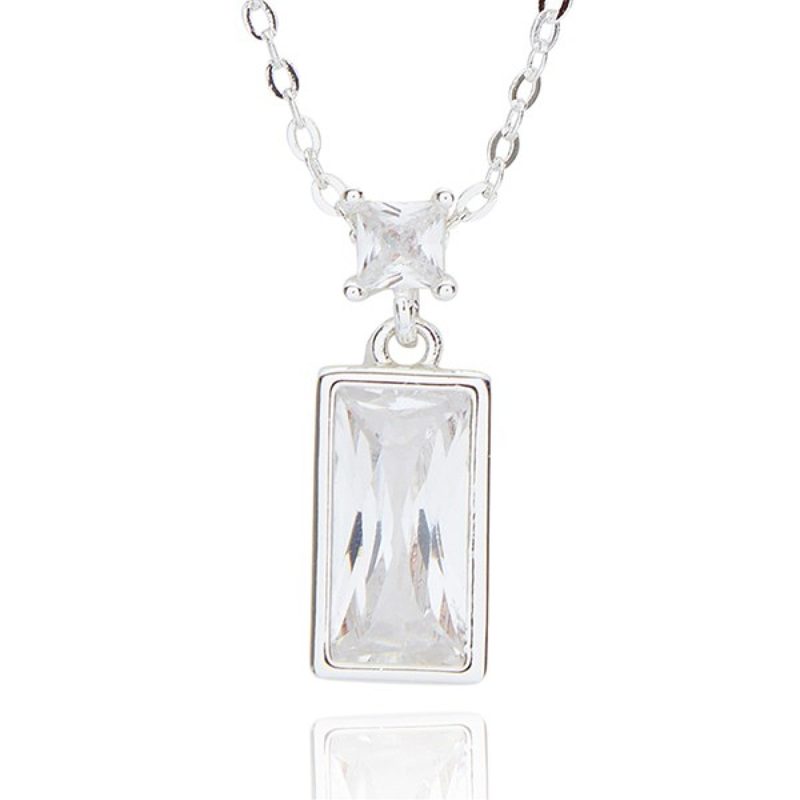 Rectangle Silver Plated Cubic Zirconia Necklace by Equilibrium