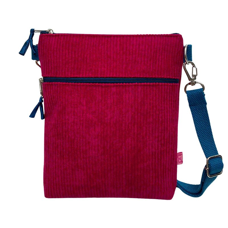 Popular design cross body bag by Lua in velvety jumbo corduroy with contrasting strap.