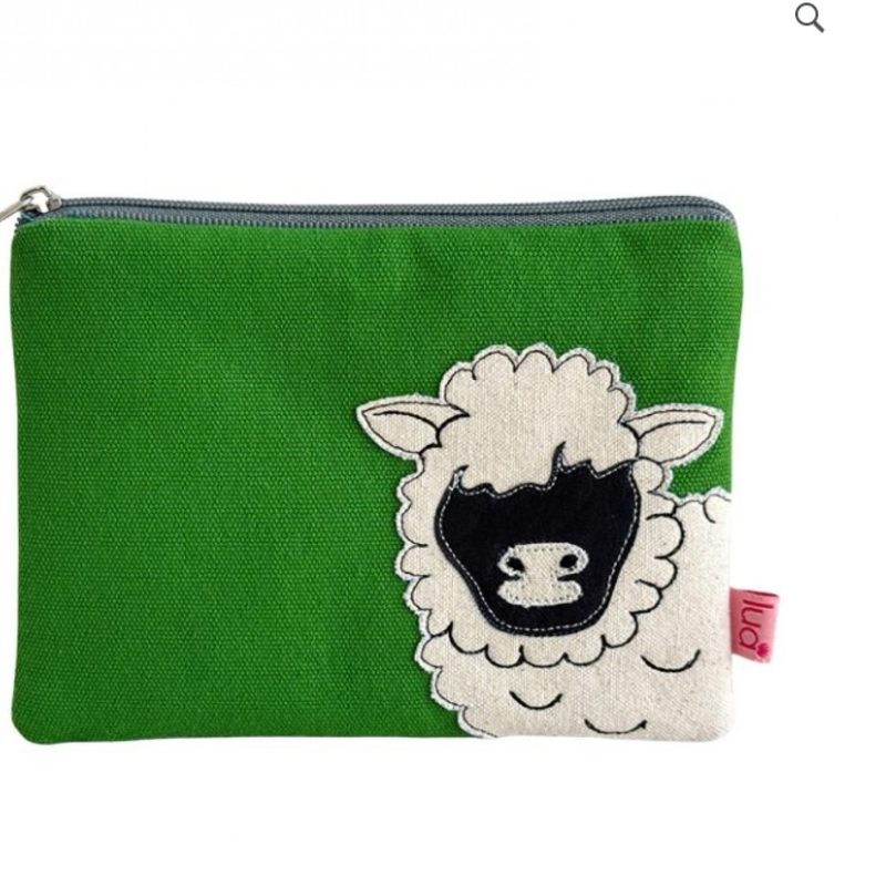 A cute cotton canvas purse with a sheep’s head peeking from the side by Lua.