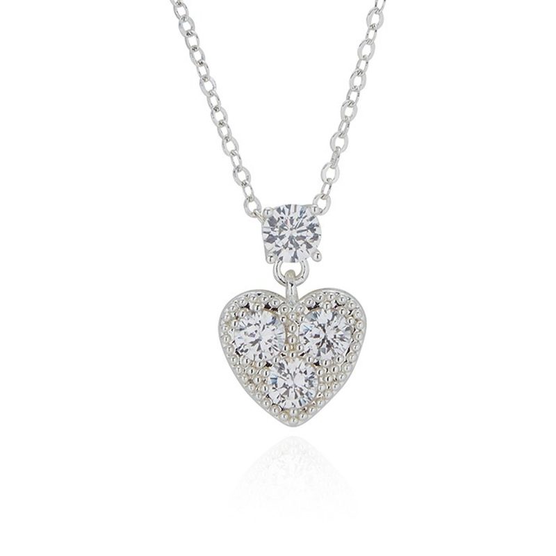 Small Silver Plated & Cubic Zirconia Heart Necklace by Equilibrium