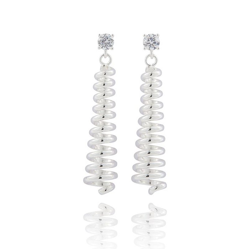 Silver Plated & CZ spiral drop Earrings by Equilibrium