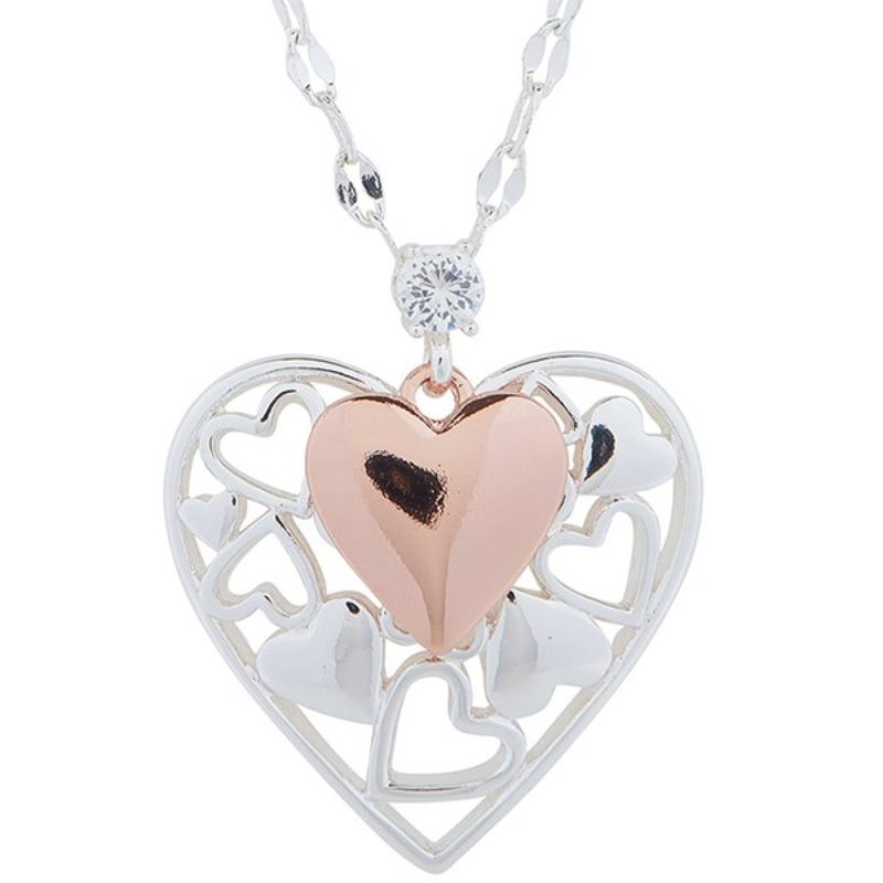 From Equilibrium this lovely silver plated two tone double heart Pendant attached to a silver plated chain and supplied with Equilibrium presentation box.
