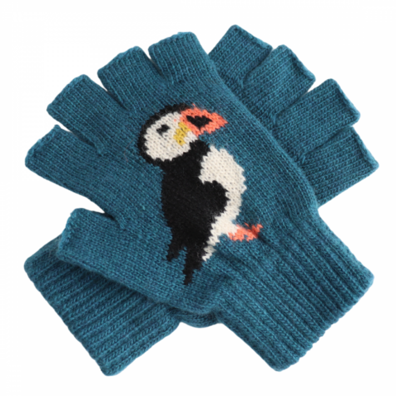 New from Lua these lovely teal fingerless gloves with HPuffin design.