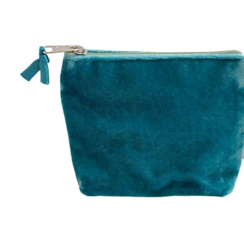 Little zipped coin purse in luxurious Teal silk velvet by LUA