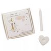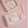 Inside is ten lightly scented white slim candles and a white ceramic heart holder together with a heart shaped tag explaining that sometimes it's the little things that matter most. Light a candle and remind yourself of that kind word, the shared laugh, the small moments shared with family & friends that make life worthwhile.