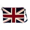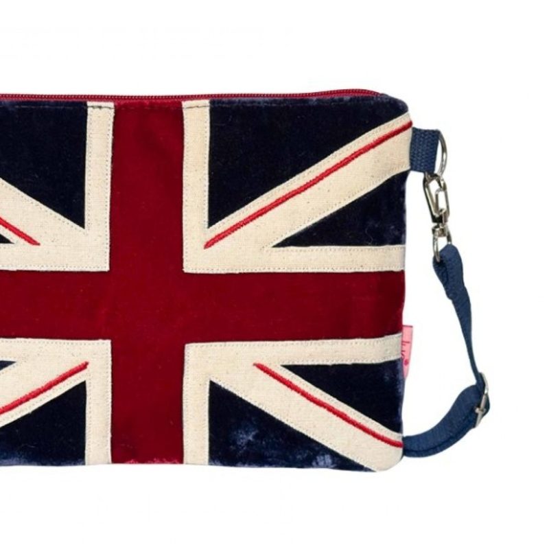 A cross body bag by Lua with an appliqued / embroidered bold Union Jack in velvet.