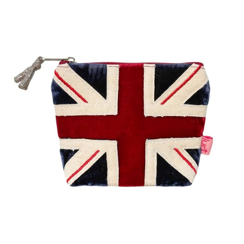 A cute Mini Purse in multi patch silk velvets with an embroidered and appliqued Union Jack.