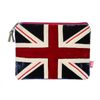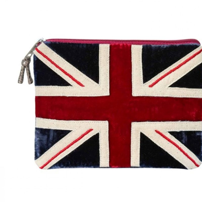 An eye catching purse by Lua with an appliqued / embroidered bold Union Jack in velvet. With metallic faux leather zip tie.