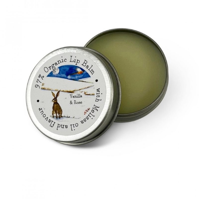 This is Vanilla & Rose Lip Balm by Heaven Scents Winter Range with a beautiful Harwe illustration