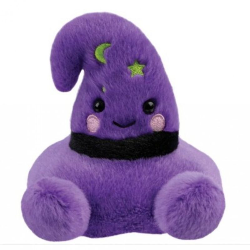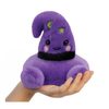 A super soft and cuddly soft toy, in a bright purple colour and a cute smiley face