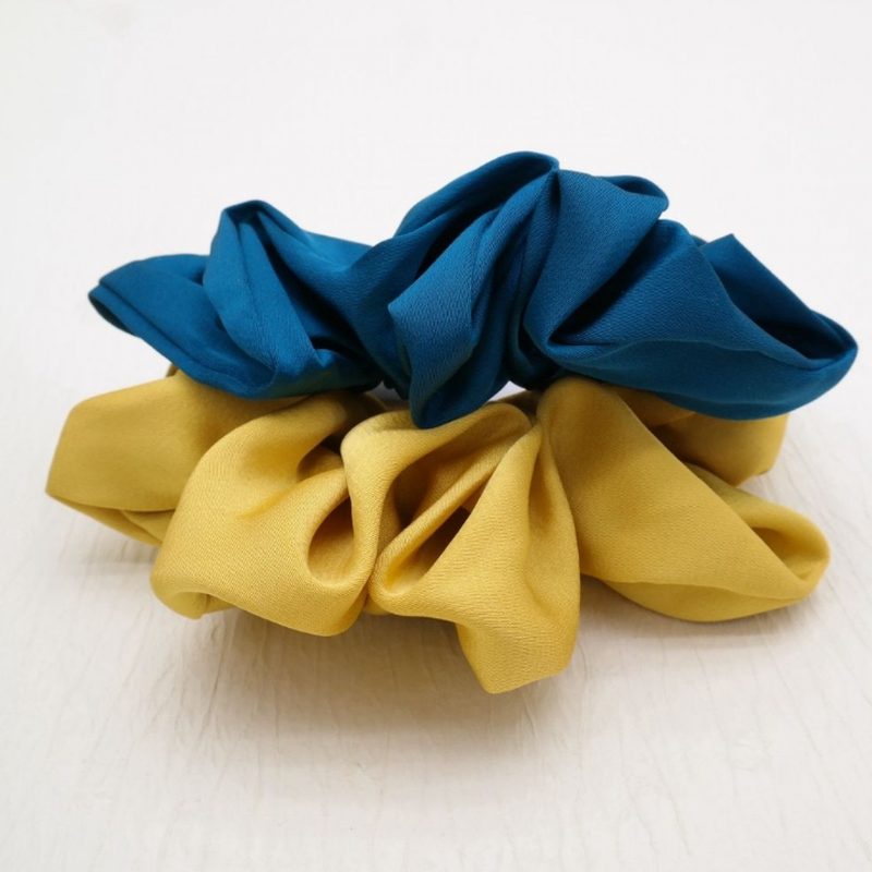 Yellow and Teal Satin Scrunchies (Twin Pk)
